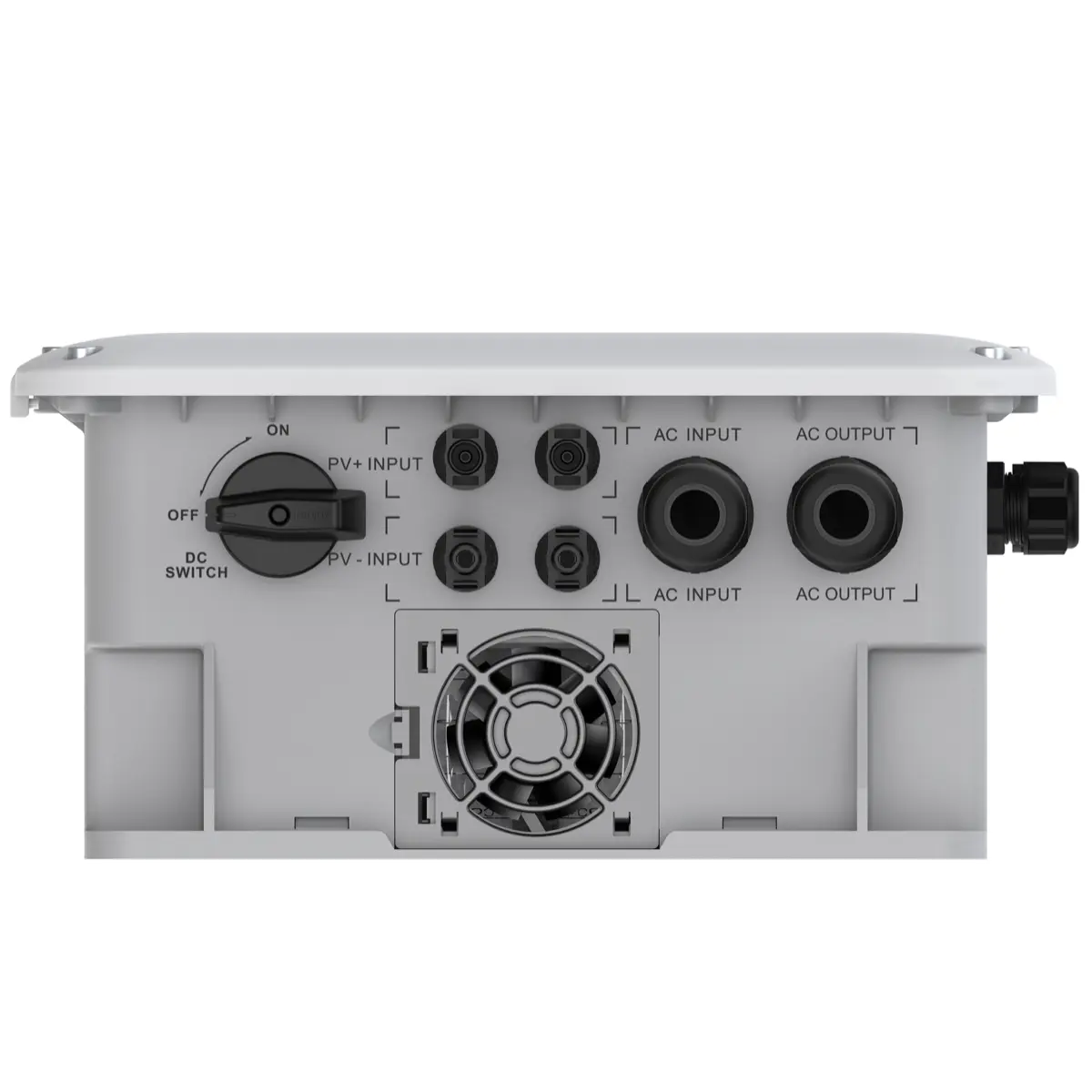Este modelo permite conectar paneles solares y fuente CA al mismo tiempo.