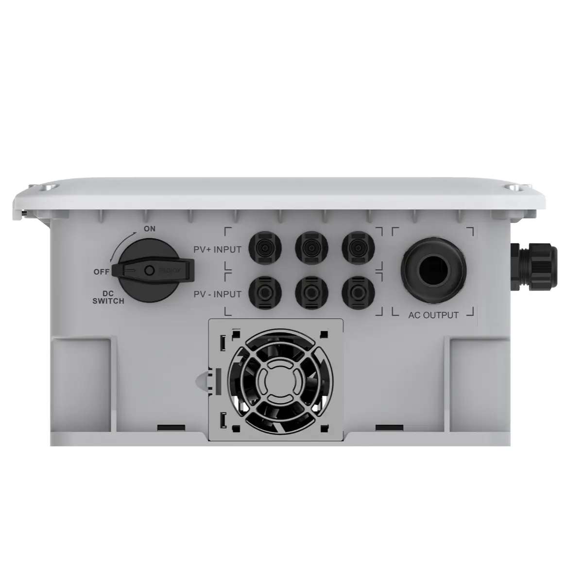 En él están integrados el disyuntor CC, el fusible, el protector de descargas atmosféricas, y el busbar, por lo tanto no es necesario armar un gabinete combinador por separado.