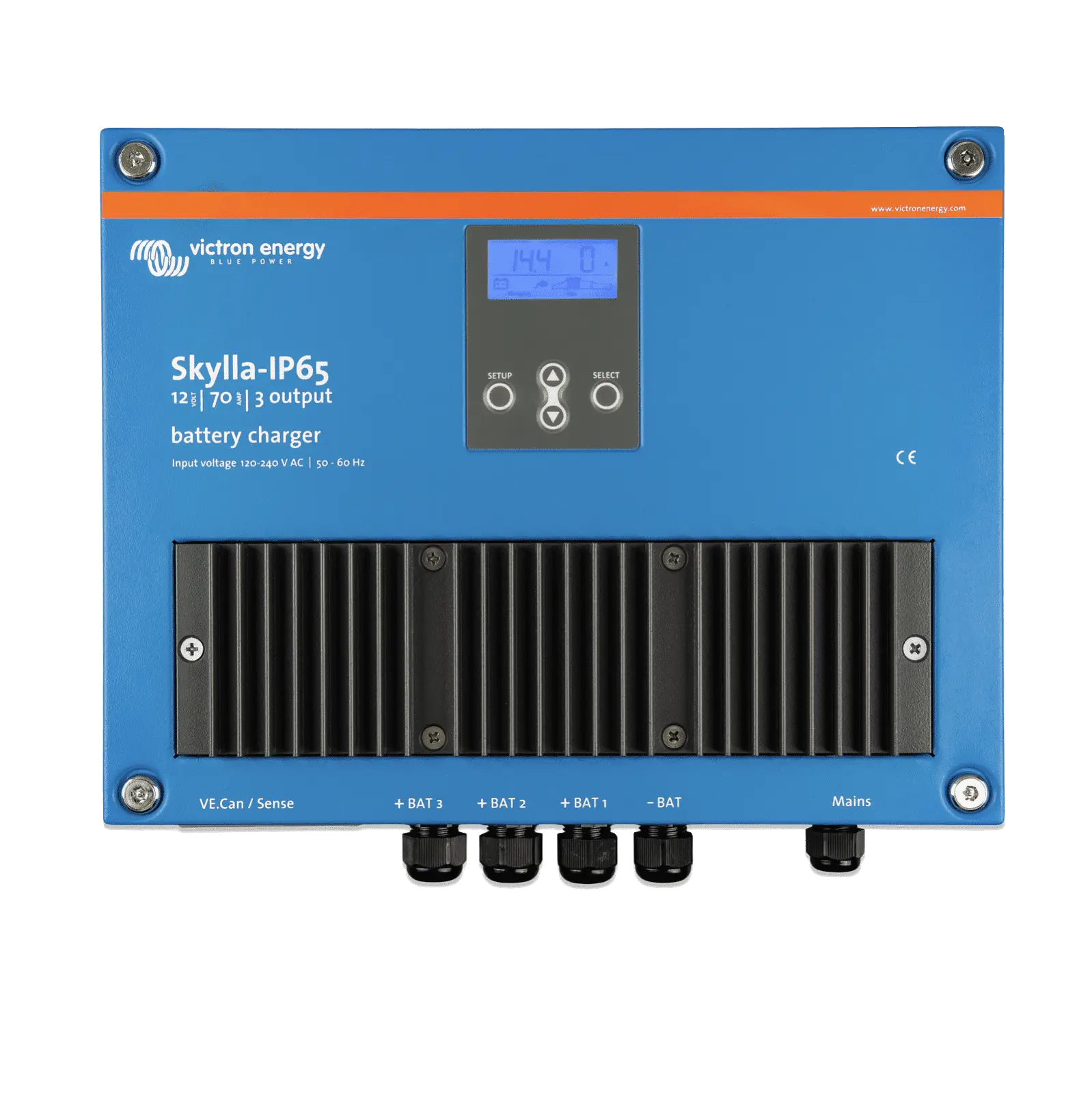 Un cargador de baterías potente, resistente al agua e inteligente con una algoritmo de carga adaptativa de siete etapas, adecuado para una gran variedad de tipos y composiciones químicas de baterías y con un algoritmo de carga exclusivo para ion litio.