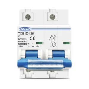 Este interruptor magneto térmico automático (DC MCB) TOMZN de dos polos para positivo y negativo, está diseñado para aplicaciones de corriente continua (CC), brindando una protección confiable contra sobrecargas y cortocircuitos en sistemas de hasta 500 Vcc.