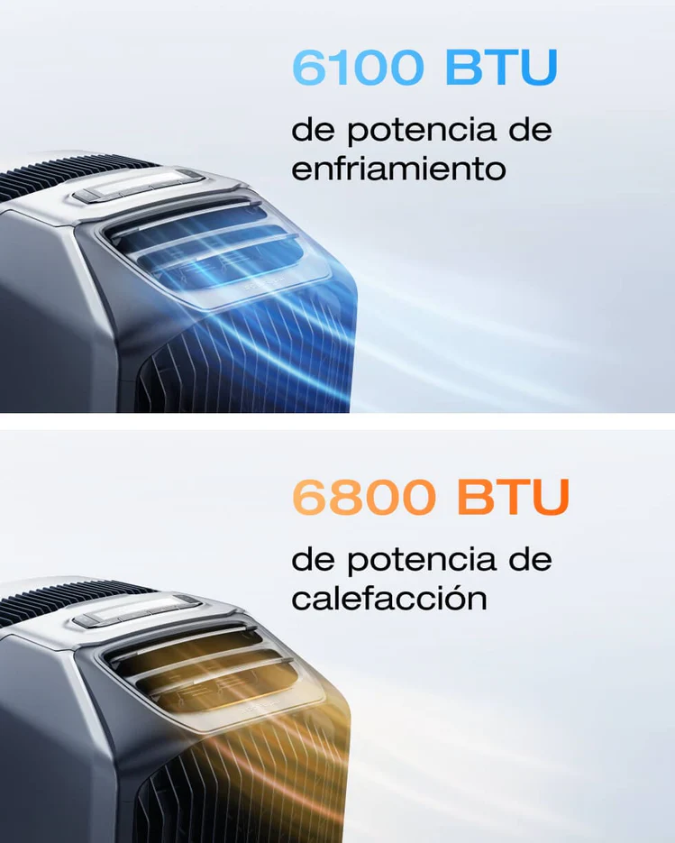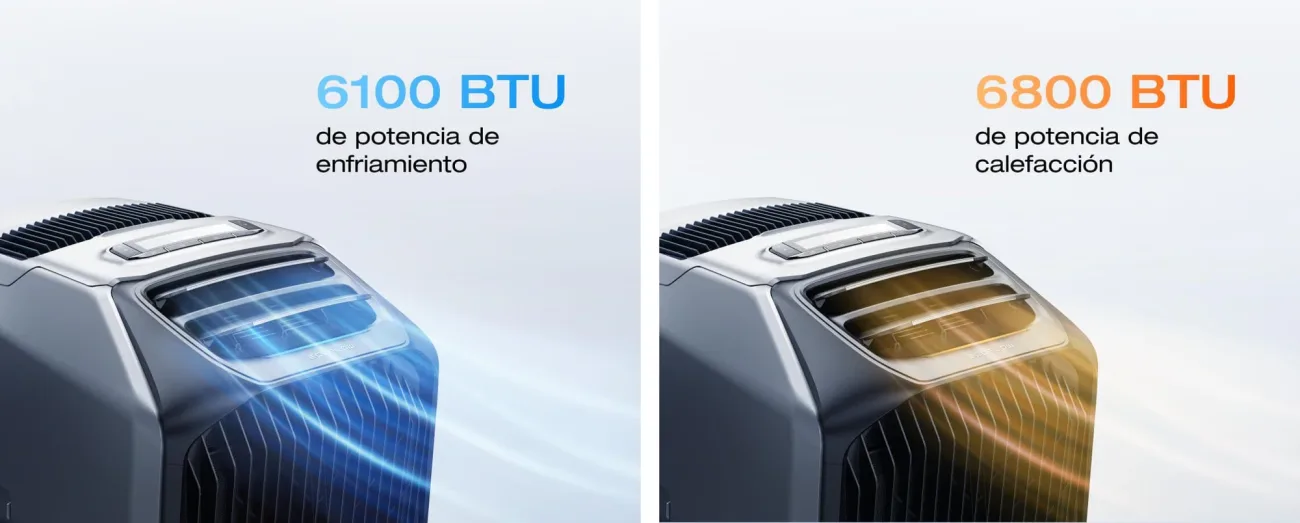 6100 BTU de potencia de enfriamiento y 6800 BTU de potencia de calefacción