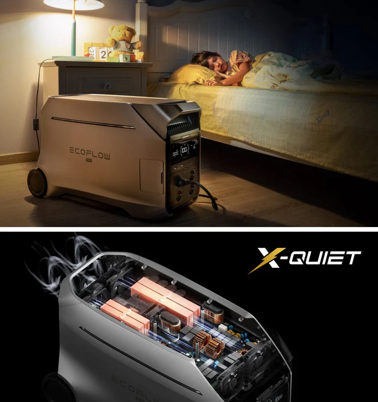 Ofrece hasta 7 métodos de carga súper rápida —incluyendo CA de pared, solar, por el encendedor de cigarrillos del vehículo, generadores, alternador Ecoflow, cargadores de vehículo eléctrico CA y una combinación De Fuentes múltiples de hasta 7000 W— lo que permite recargar desde el 0 al 80 % en solo 1 hora. Además, su diseño silencioso (≈30 dB) asegura comodidad total en interiores.