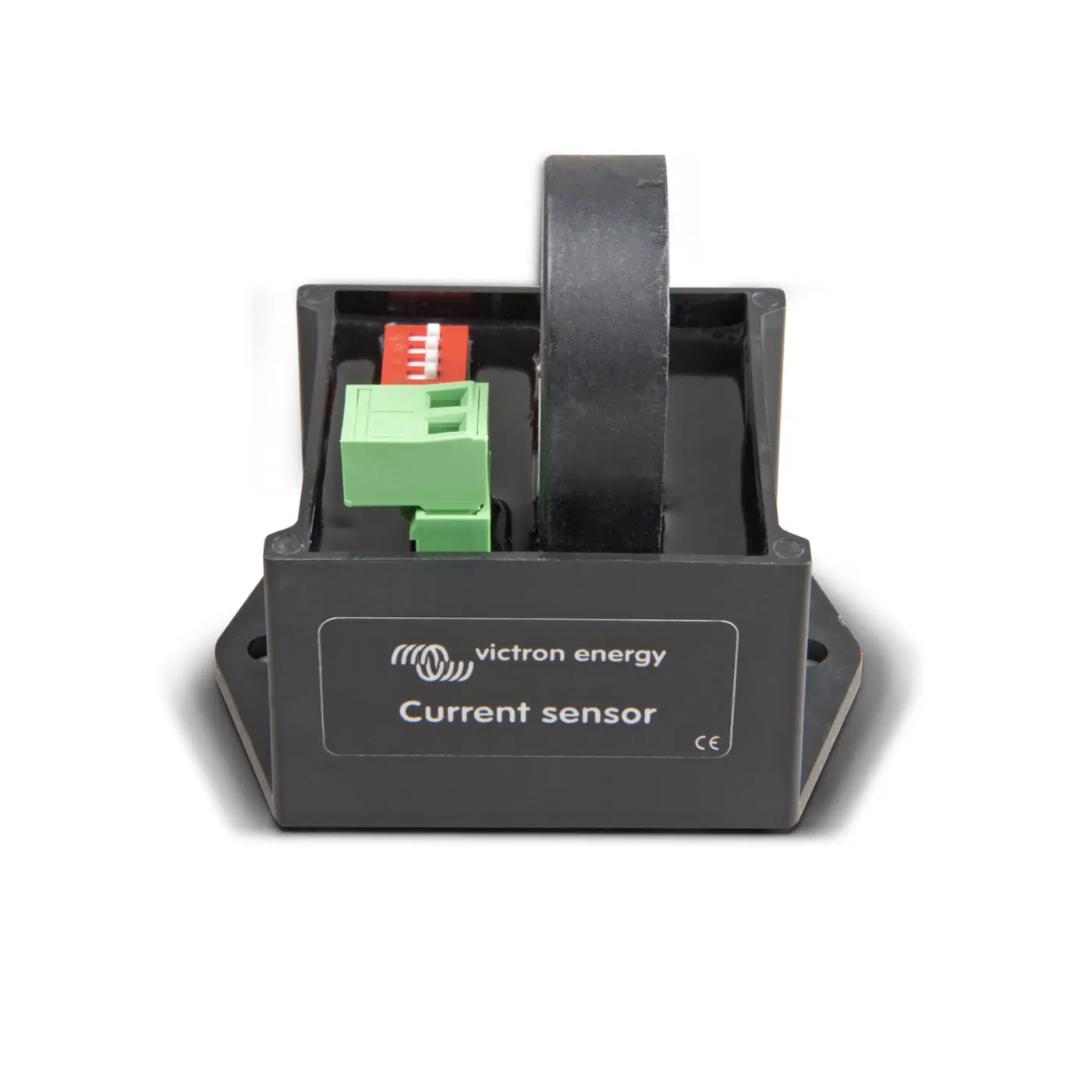 El sensor de corriente alterna CA es un sencillo sensor de corriente externo utilizado para medir la corriente CA, la potencia (en VA) y calcular la energía de un inversor FV conectado a una entrada o salida CA de un Multi o de un Quattro. A continuación, estos valores pueden mostrarse y enviarse a una web VRM mediante el Color Control. Los dos cables de medición pueden conectarse a la entrada AUX y/o a la entrada del sensor de temperatura de un Multi o de un Quattro.