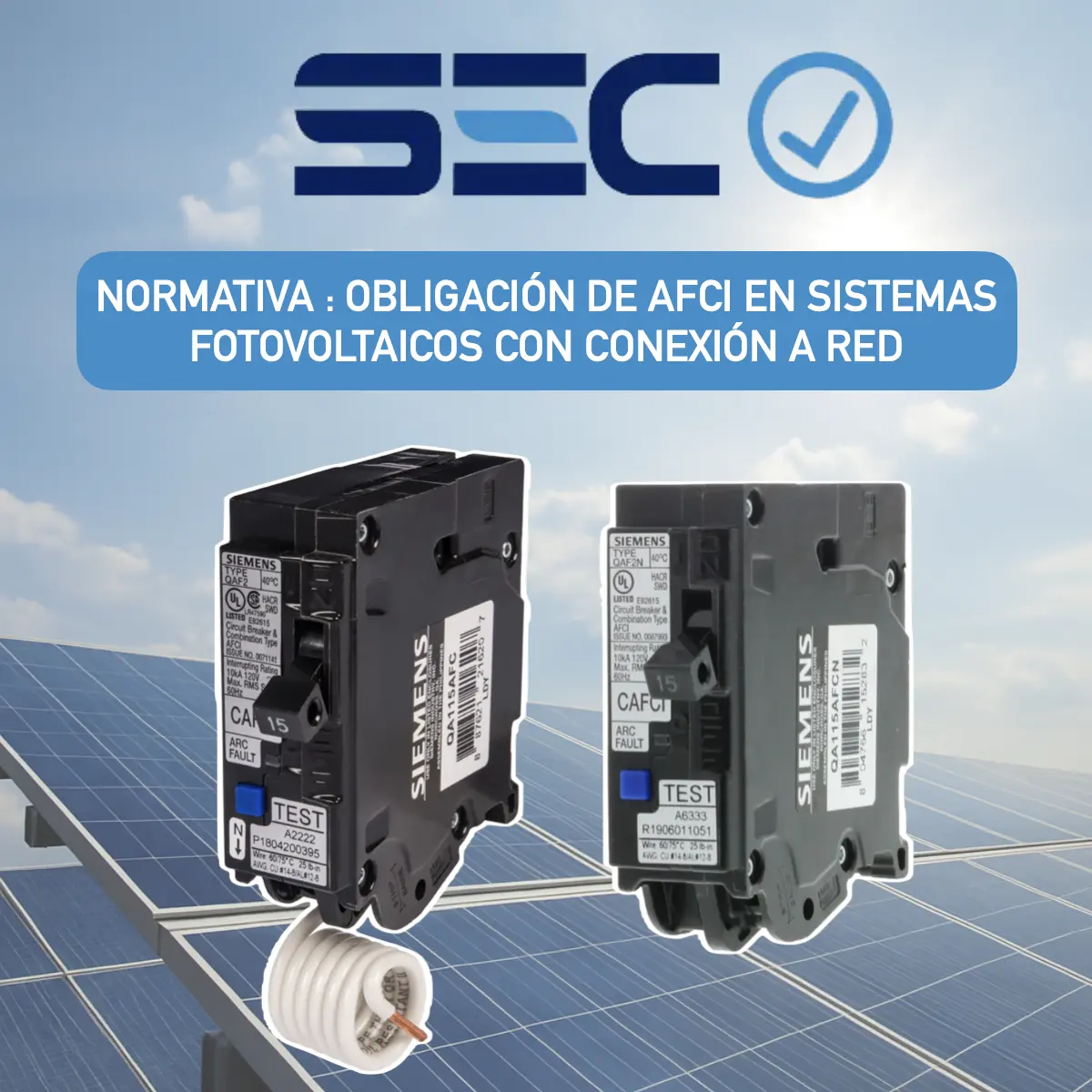 A partir de este año, la Superintendencia de Electricidad y Combustibles (SEC) ha establecido que todos los inversores fotovoltaicos conectados a red en Chile deben incorporar un interruptor de circuito por falla de arco (AFCI). Esta exigencia está recogida en la Resolución Exenta N° 29.787 de 2024, que actualiza la INSTRUCCIÓN TÉCNICA RGR N°02/2024 : DISEÑO Y EJECUCIÓN DE LAS INSTALACIONES FOTOVOLTAICAS CONECTADAS A REDES DE DISTRIBUCIÓN, definiendo nuevos estándares de seguridad para instalaciones fotovoltaicas conectadas a red. La normativa tiene como objetivo reducir los riesgos eléctricos y prevenir incendios derivados de arcos defectuosos en línea, asegurando instalaciones fotovoltaicas más seguras y confiables.