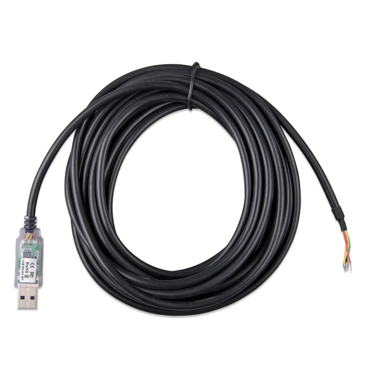 Este cable de 5 metros permite conectar los puertos de RS485 de los productos de VIctron con USB.