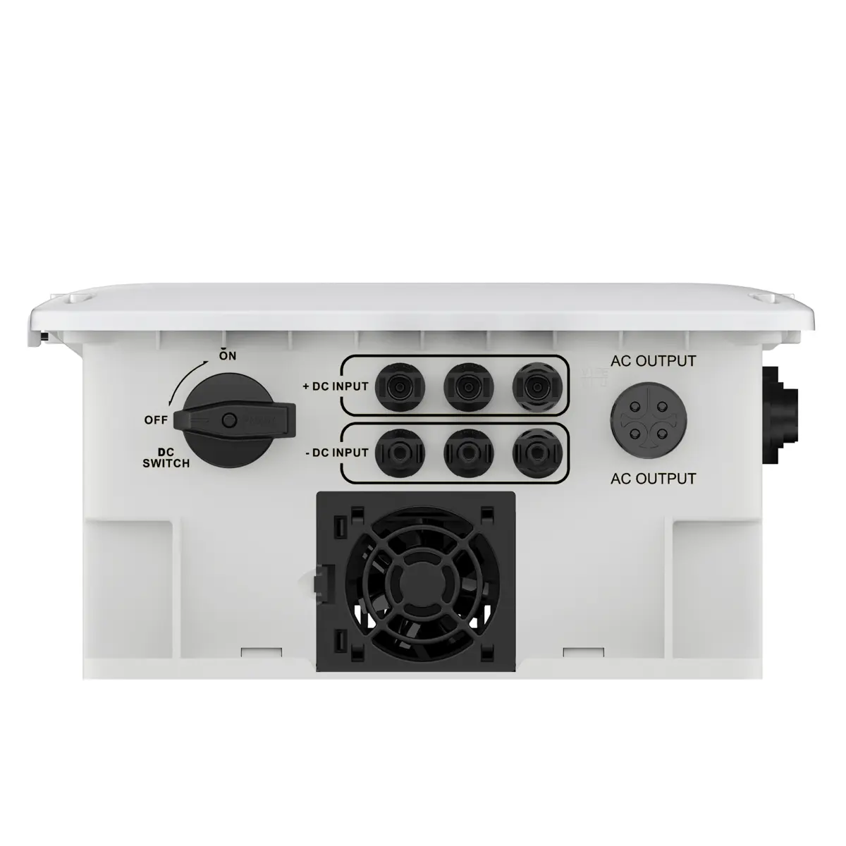 En él están integrados el disyuntor CC, el fusible, el protector de descargas atmosféricas, y el busbar, por lo tanto no es necesario armar un gabinete combinador por separado.