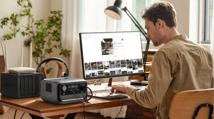 Equipada con una capacidad de 286 Wh y una salida de 600 W, la RIVER 3 Plus puede alimentar un router Wi-Fi de 3 W hasta 35 horas. Además, puede alimentar prácticamente cualquier aparato de oficina, incluidos ordenadores de 600 W durante al menos 21 minutos, permitiendo apagar y finalizar de forma segura las tareas en curso.