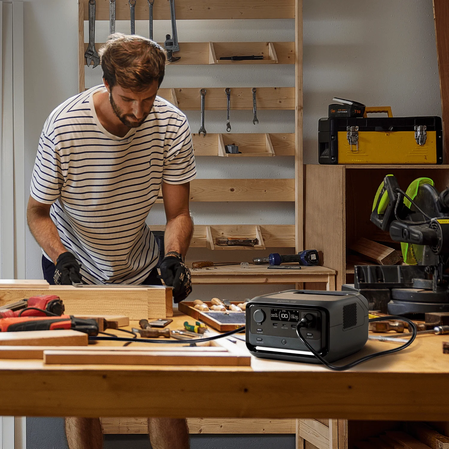 RIVER 3 Plus es una bestia en el campo de las estaciones de energía pequeñas, y es capaz de generar hasta 600 W de potencia nominal. Su tecnología X-Boost puede hacerse cargo de dispositivos de calefacción de 1200 W continuamente sin esfuerzo, y es capaz de alimentar sin problemas al 90 % de electrodomésticos. Con su luz adicional incorporada, nunca más te quedarás a oscuras.