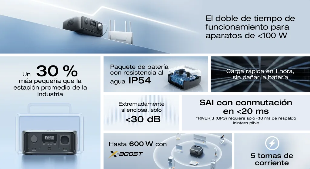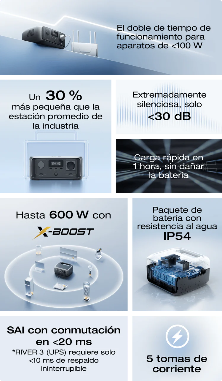 Compacta, resistente y extremadamente confiable, la RIVER 3 (UPS) es una solución ideal para quienes buscan autonomía energética en casa, al aire libre o en movilidad.
