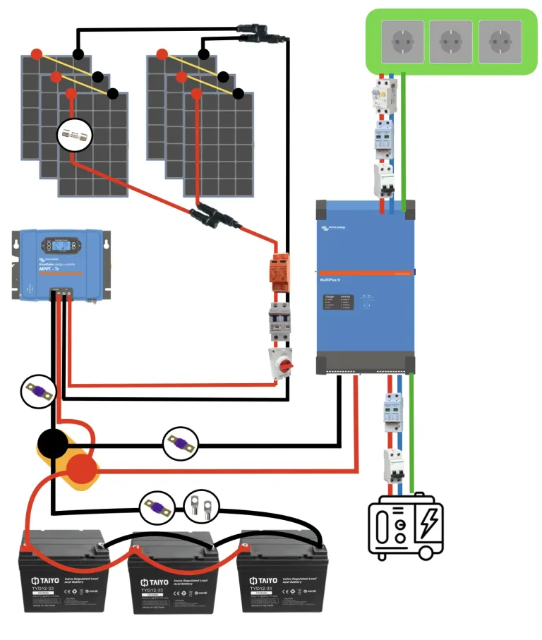 En un sistema de energía solar, no basta con tener buenos paneles, un regulador MPPT o un inversor de calidad. Lo que realmente asegura el rendimiento y la seguridad del sistema a largo plazo es la correcta conexión y protección eléctrica. Cada cable, fusible y protección contra sobretensiones cumple un rol vital para garantizar que la energía fluya con eficiencia y que los equipos estén protegidos ante cualquier eventualidad.